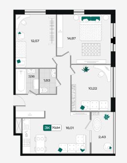 Общая площадь70,54 м²