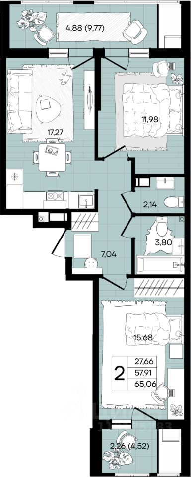 Высота потолков до 3,9 м наполняет пространство светом и воздухом, создавая ощущение свободы.