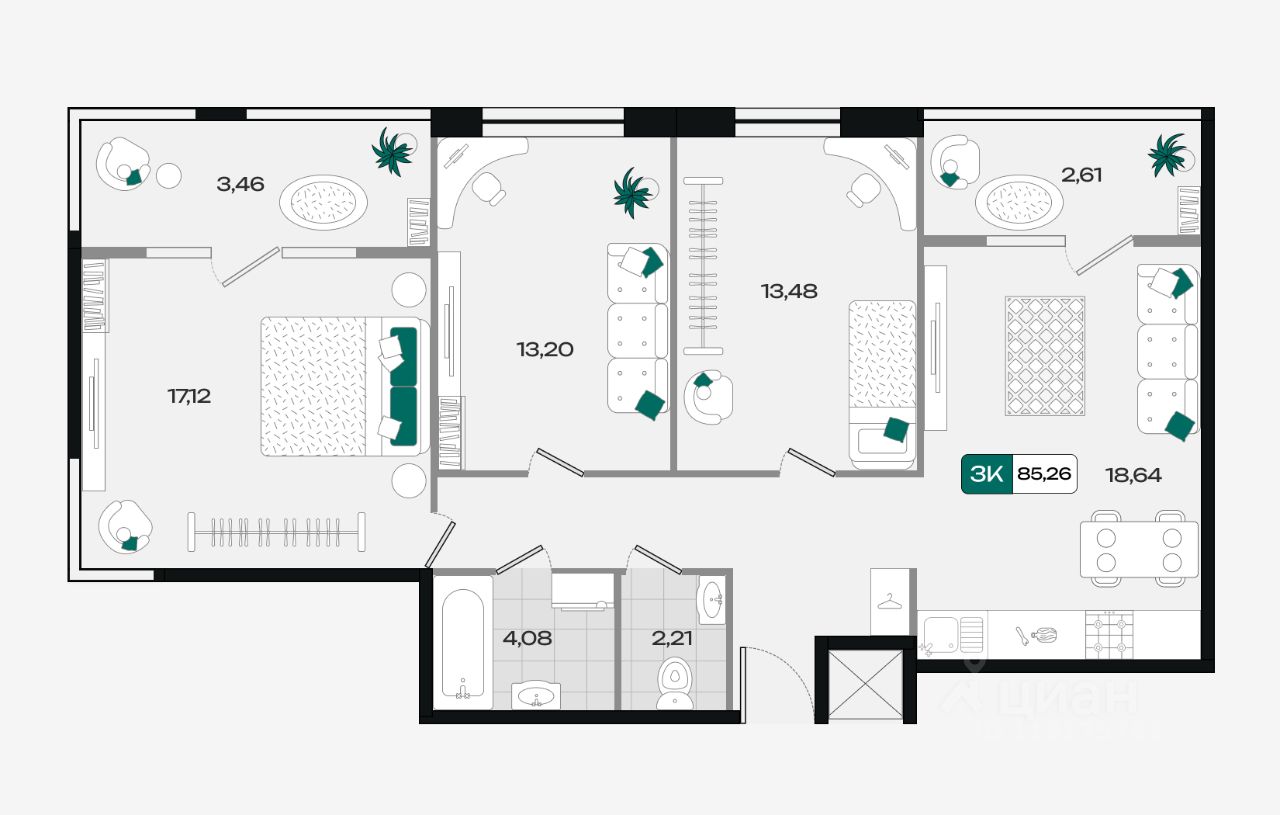 Общая площадь85,26 м²