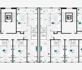 Первые этажи предназначены для коммерческой недвижимости, что обеспечивает удобство и доступность всех необходимых услуг.