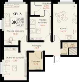 Общая площадь68,22 м²