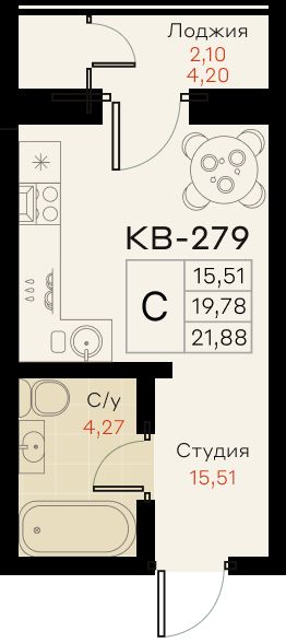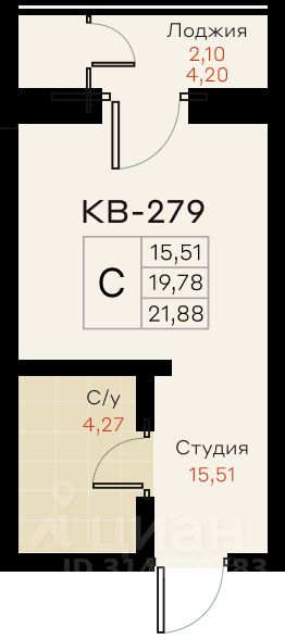 Общая площадь20,88 м²
