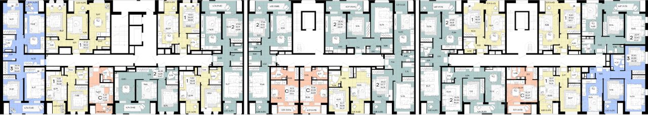 Первые этажи предназначены для коммерческой недвижимости, что обеспечивает удобство и доступность всех необходимых услуг.