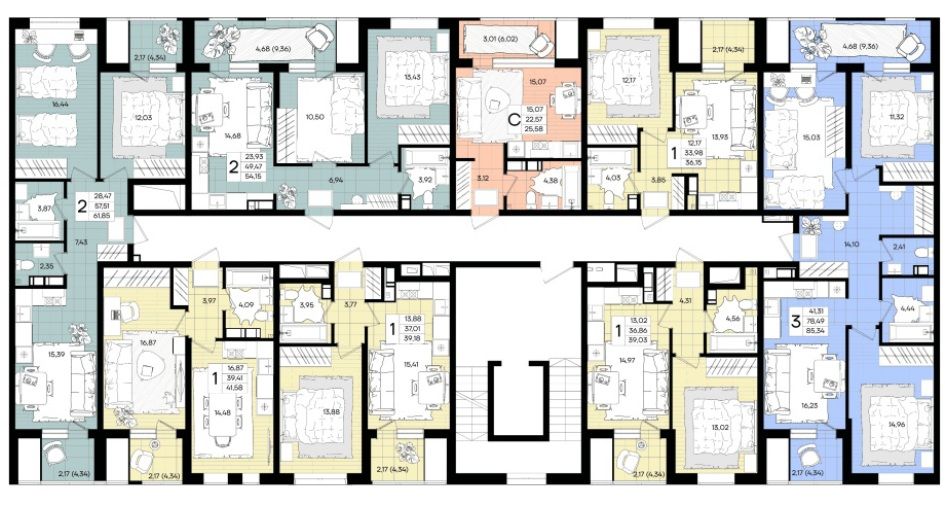 Первые этажи предназначены для коммерческой недвижимости, что обеспечивает удобство и доступность всех необходимых услуг.