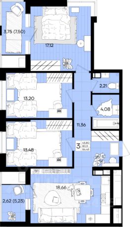 Высота потолков до 3,9 м наполняет пространство светом и воздухом, создавая ощущение свободы.