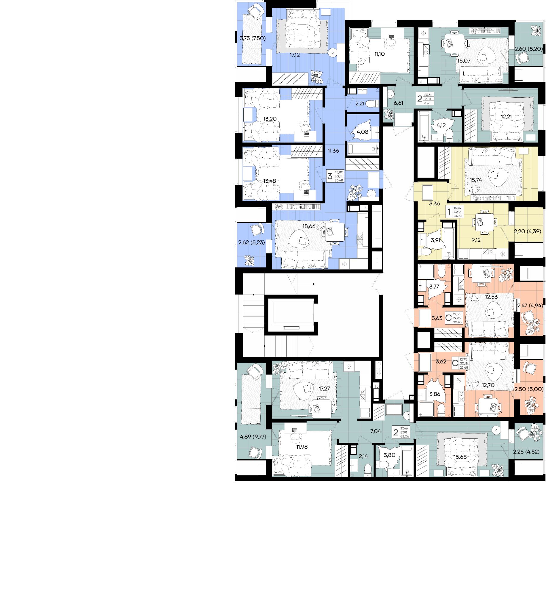 Первые этажи предназначены для коммерческой недвижимости, что обеспечивает удобство и доступность всех необходимых услуг.