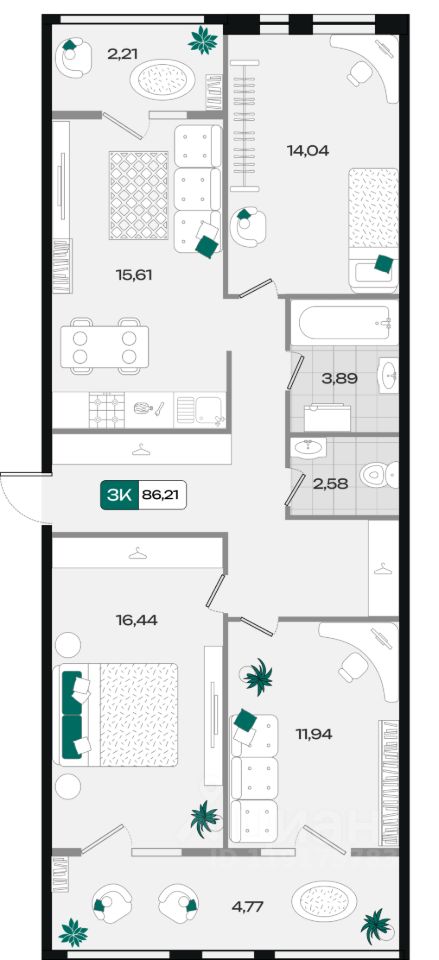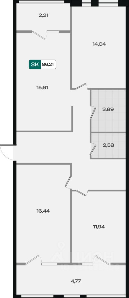 Высота потолков до 3,9 м наполняет пространство светом и воздухом, создавая ощущение свободы.