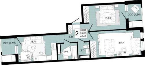 Высота потолков до 3,9 м наполняет пространство светом и воздухом, создавая ощущение свободы.