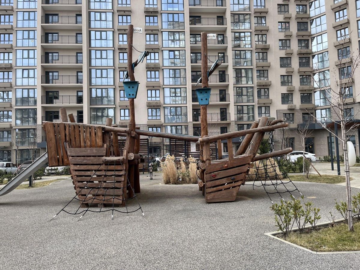 Придомовая территория благоустроена: детская и спортивная площадки, зоны отдыха для жителей.