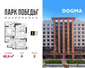 Срок сдачи: 2 кв. 2026, общей площадью 62.6 кв.м., на 4 этаже.