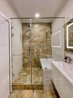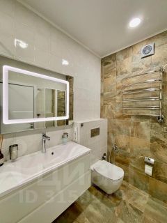 В квартире в комнатах и в кухне установлены 5 сплит систем: Pioneer, Rovex. Сантехника Roca, Ideal, Hansgrohe. Шторы сшиты на заказ. Тканевые потолки.