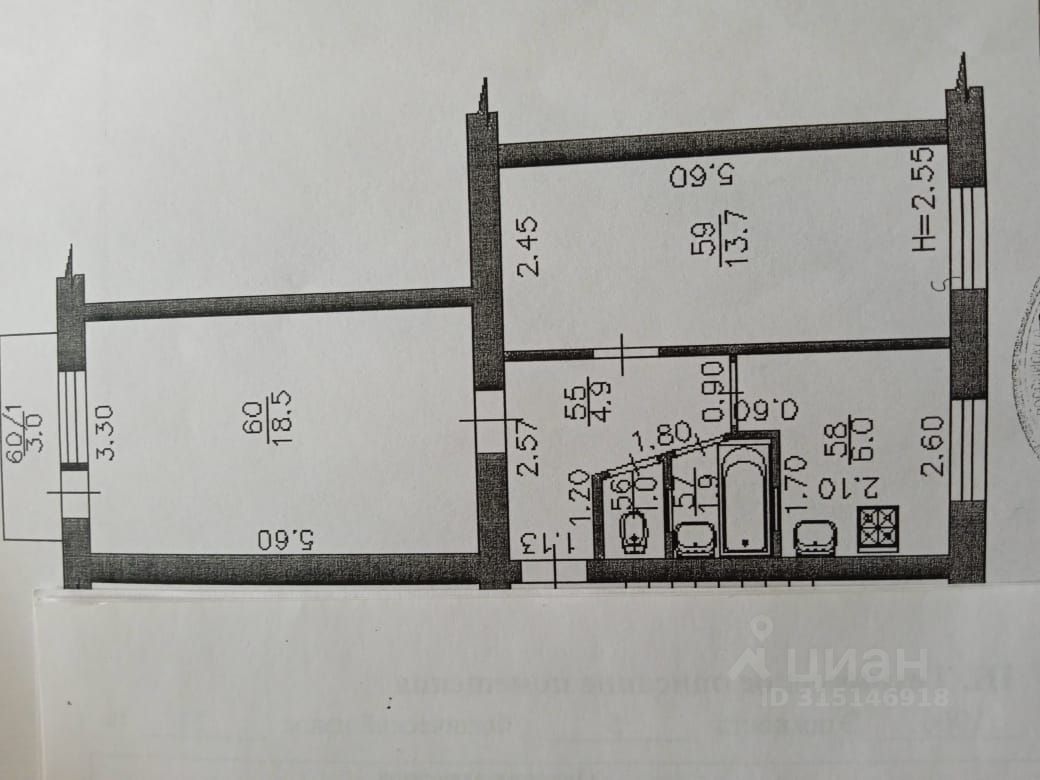 2-х комнатная квартира с удобной планировкой.