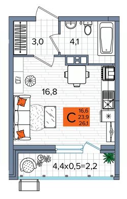 площадью 26.1 кв.м. на 8 этаже в 3-м подъезде - это оптимальный выбор для тех, кто ценит уют, качество и современный комфорт.