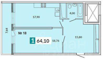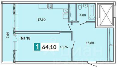 Просторная кухня общей площадью 18 м2 и комната 18,7 м2 с выходом на ленточную лоджию 7,64 м2, санузел совмещенный, просторная прихожая 15,8 м2 (есть возможность сделать гардеробную или кабинет) Квартира продаётся в предчистовой отделке от застройщика (у покупателя есть уникальная возможность сделать ремонт на свой вкус).
