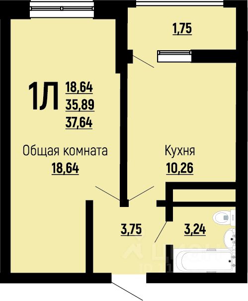 Продаётся 1-комнатная квартира в строящемся доме (Литер 10), срок сдачи: II-кв. 2026, общей площадью 37.64 кв.м., на 17 этаже. Расположение, транспортная доступность
