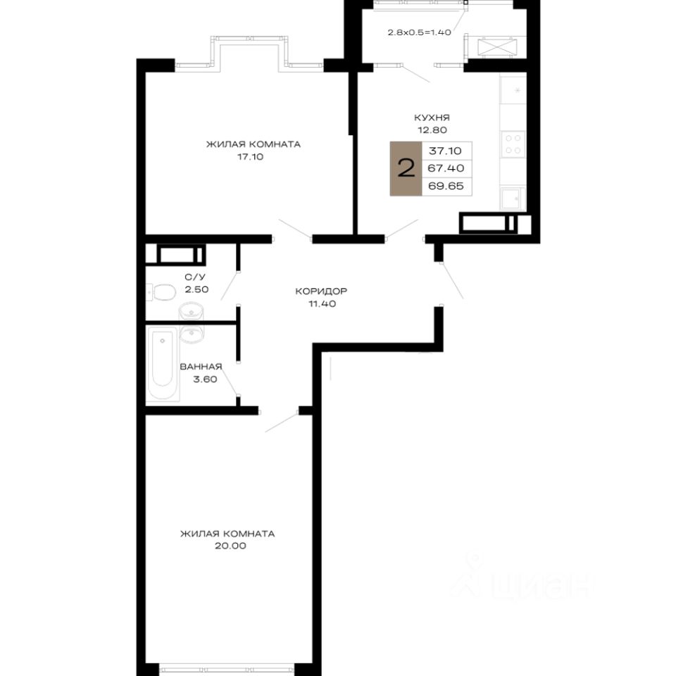 Общая площадь69,65 м²