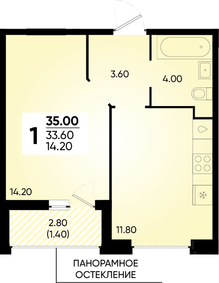 Площадь кухни11,8 м²