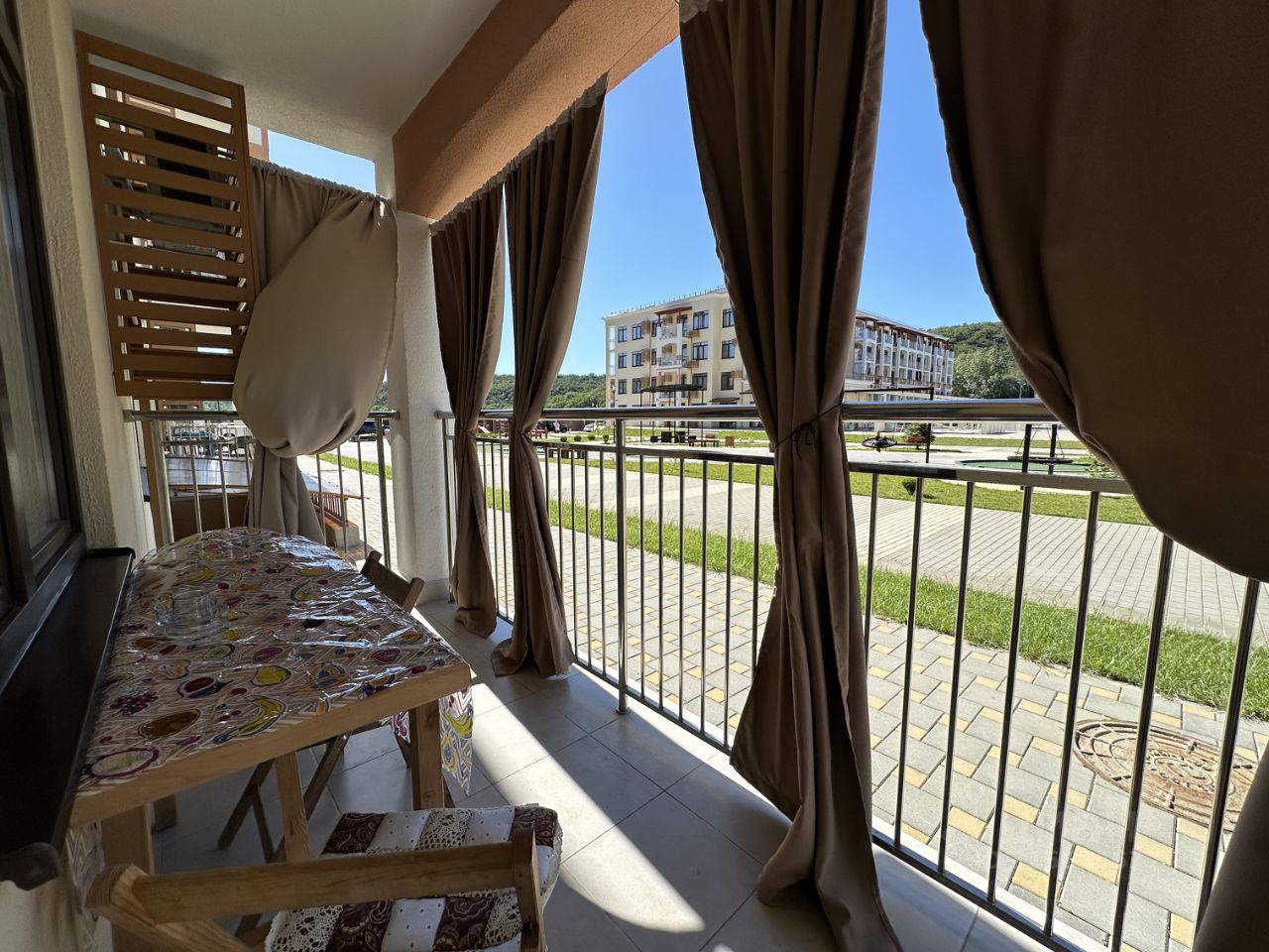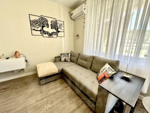 В квартире выполнен ремонт, что позволяет вам сразу заселиться и обустроить жилье по своему вкусу. Из окон открывается вид на бассейн, так и во двор, поэтому в квартире всегда много света. Планировка включает отдельный санузел и балкон, где можно обустроить уютный уголок для отдыха.