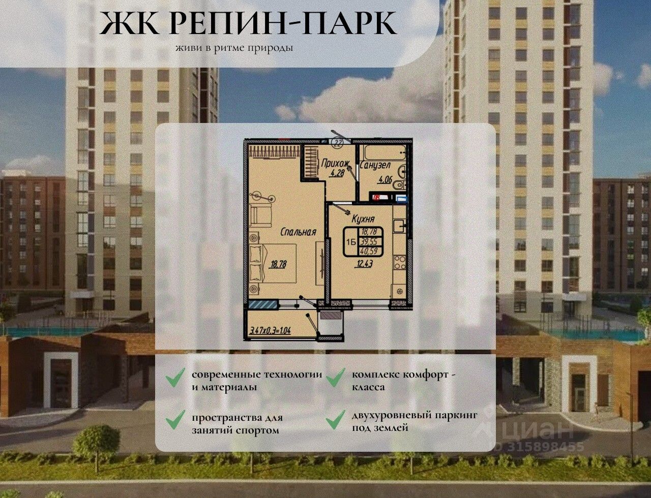 Уникальное предложение в жилом комплексе "Репин Парк"! Комплекс расположен всего в 10 минутах от центра Краснодара, в Фестивальном микрорайоне. Строгое соблюдение сроков и высокое качество строительства - главные преимущества "Репин Парк". Современные технологии и материалы обеспечивают надежность и экологичность зданий. Монолитный железобетон и трехслойные наружные стены обеспечивают прочность и сохраняют тепло. Переменная этажность комплекса от 9 до 18 этажей позволяет получить больше солнечного света для всех уровней квартир с внутренней стороны. Площадь придомовой территории будет оформлена зелеными насаждениями, создавая приватное пространство для отдыха, детских игр и семейного досуга. Во дворе также будут пространства для занятий спортом и воркаутом. Парковка будет предусмотрена на подземном уровне с двухуровневым паркингом для жителей и гостевыми машиноместами. Квартира сдается с уже завершенными черновыми работами, включая коммуникации, стяжку пола, разводку электросетей и теплоснабжения, остекление окон и балконов, установку радиаторов и входных дверей. В ЖК также предусмотрены индивидуальные кладовые помещения. Благодаря удобному расположению, жители "Репин Парк" могут наслаждаться пешей доступностью к крупным сетевым магазинам, фитнес-клубам, школам, детским садам, кафе, ресторанам и остановкам общественного транспорта. Удобная транспортная развязка обеспечивает простой доступ и избавляет от пробок. "Репин Парк" предлагает комфортное расположение, полный спектр социальных и инфраструктурных объектов, современные технологии и уютную атмосферу. Качество, комфорт и доступность - вот то, что делает "Репин Парк" особенным. Звоните нам прямо сейчас! Успейте купить свою счастливую квартиру!