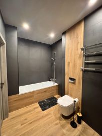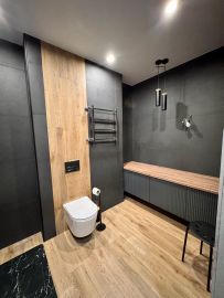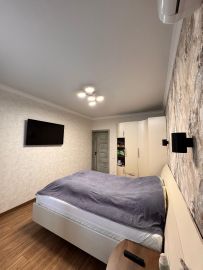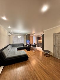 Продается просторная двухкомнатная квартира 78 м.кв. на 1 этаже 22 этажного монолитно -кирпичного дома с качественным дорогим ремонтом. В каждой комнате сплит система, остается встроенная кухонная мебель и техника, в спальне встроенный шкаф. В квартире два сан узла, один оборудован ванной, второй душевой кабиной. Зона кухни- 12.5 м.кв.; гостинная зона- 14.5 м.кв., отдельная спальня - 15 м.кв. Из кухни балкон 3.4. м.кв. Просторный холл 10 м, отдельная комната гардеробная 9м. Имеется небольшая перепланировка и она узаконена : убрали часть стены между кухней и гостинной, делали ремонт для себя из высококачественных материалов, на полу ламинат, сан узел в плитке, обои , высокие потолки 2.8 м .Дом свежий 2021 г. парковка во дворе, а так же имеется подземный паркинг в комплексе. Рядом у дом Николаевский бульвар, новая школа ,детский сад ,поликлиника, остановка транспорта в пешей доступности. Рядом имеется всё необходимое для комфортного проживания : магазины , рынок, в микрорайоне свой парк у реки, так же недалеко парк Солнечный остров, университет, ТРЦ. Один собственник, без обременений. Квартира подходит для комфортного проживания, так и для сдачи в аренду. Торг возможен.