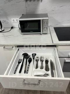 В студии сделан добротный ремонт, установлена качественная мебель, кухня со встроенной техникой.