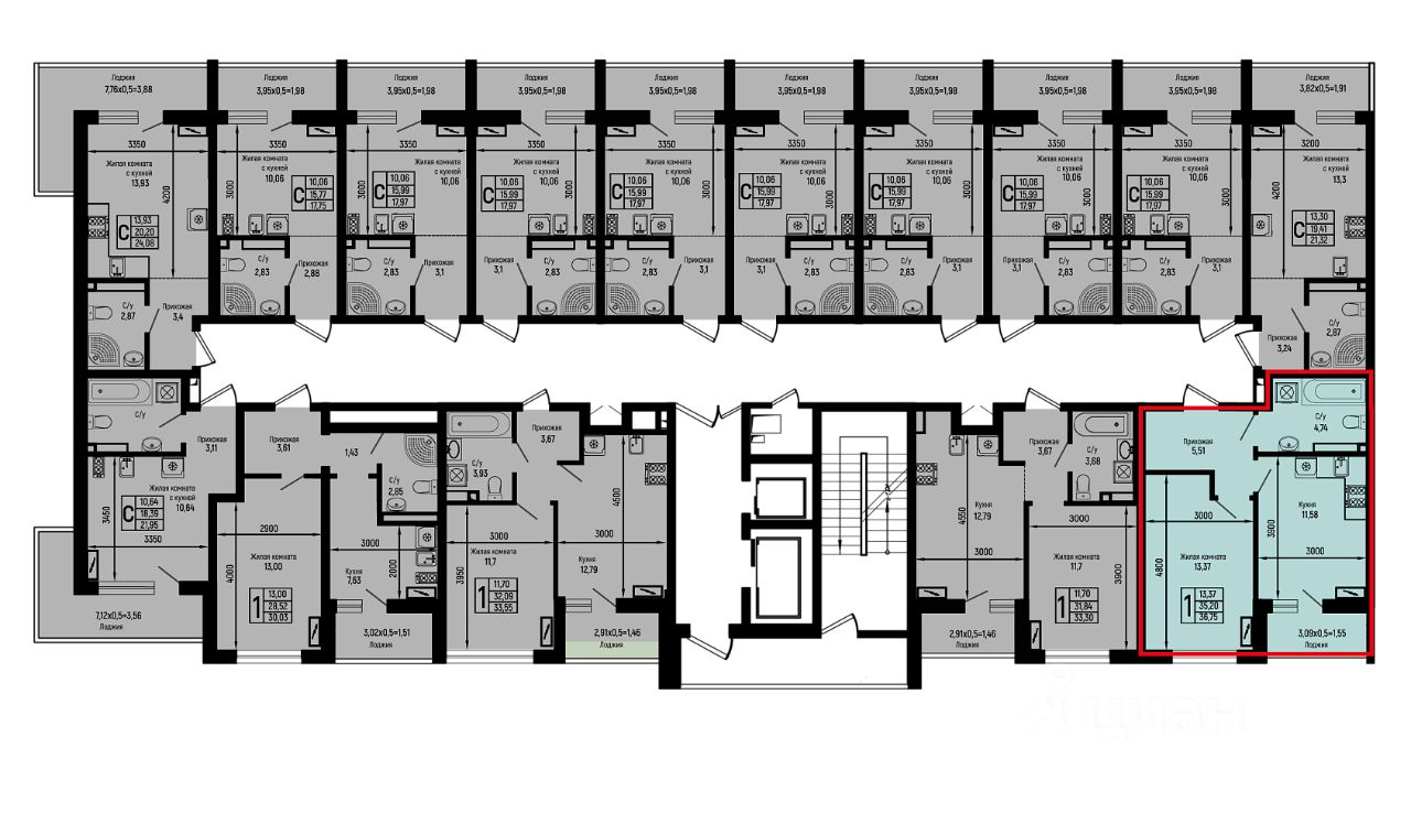 36,75 м²