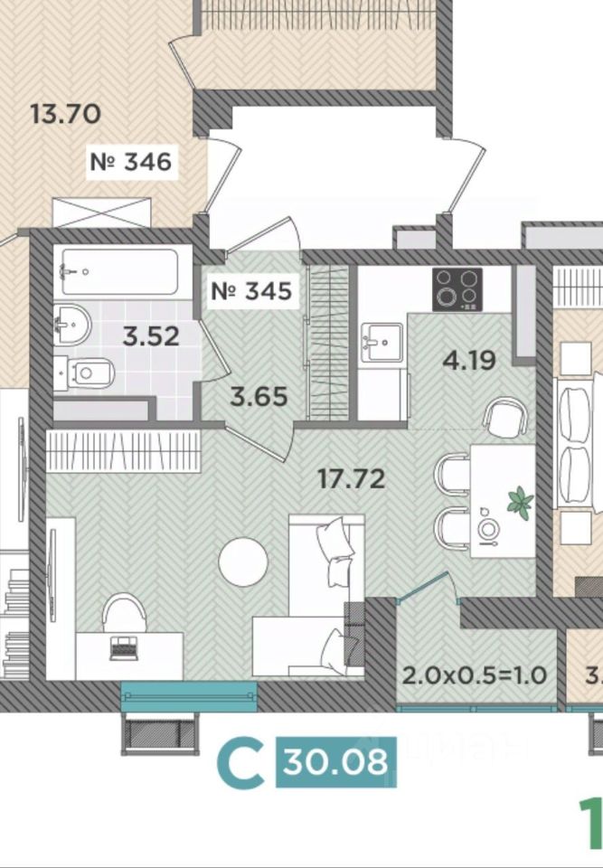 Арт. 95361638 Студия общей площадью 31,08 кв.м., в новом ЖК, в г. Темрюк.