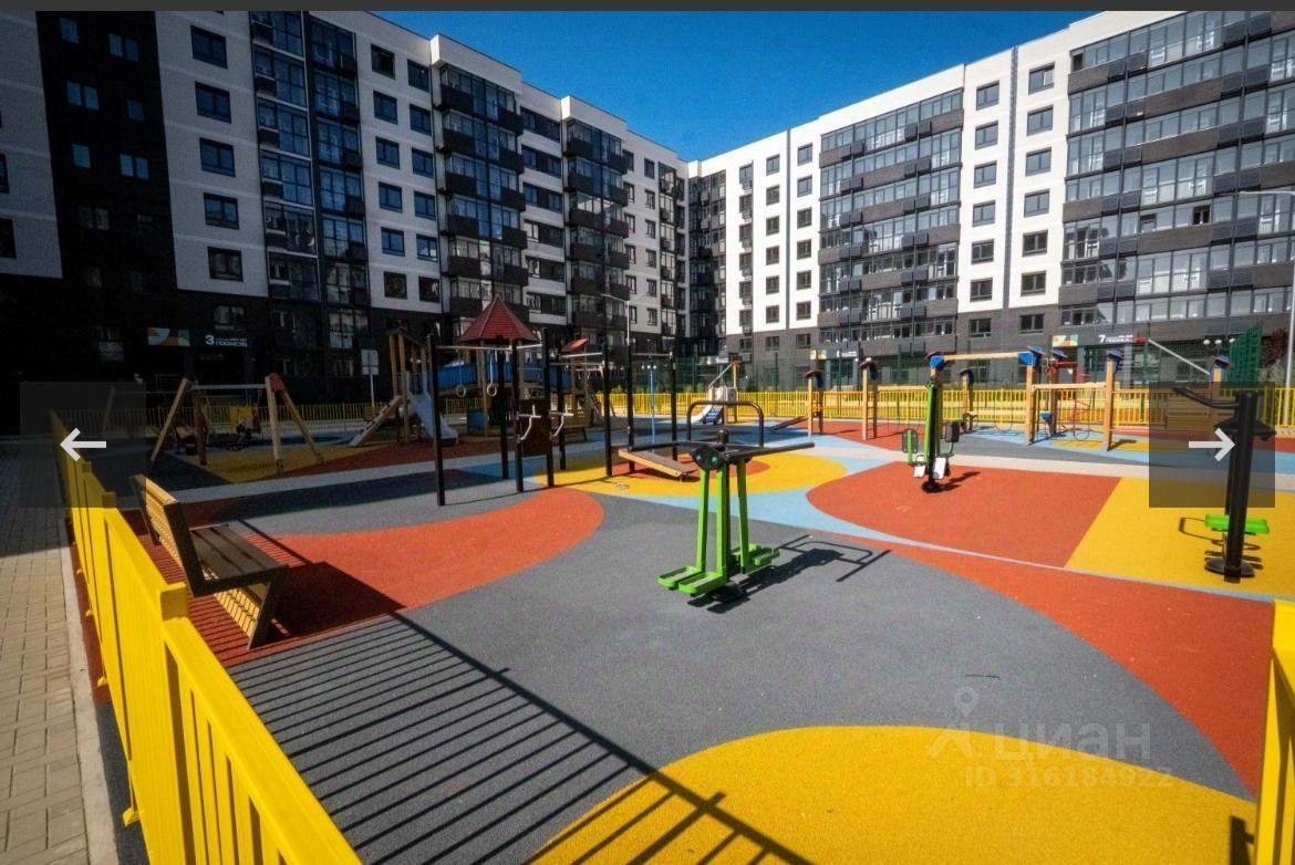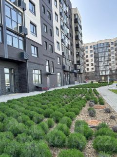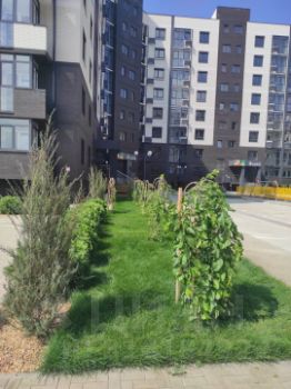 Придомовая территория с озеленением (газон, кустарники, клумбы, фруктовые деревья). За территорией двора дополнительные спортивные площадки и зоны отдыха.