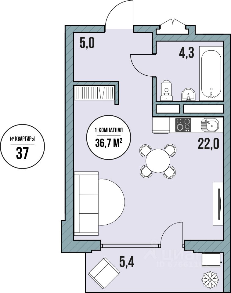 Общая площадь36,7 м²