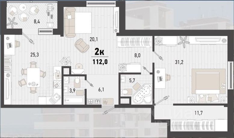 Купите роскошный пентхаус 120,3 м2 с террасой 8,4 м2! Продажа с ВЫГОДОЙ 4 800 000 рублей. Пентхаус расположен на видовом этаже, в современном жилом комплексе города Краснодара. Планировка не оставит равнодушных даже самых требовательных покупателей. Любой дизайнер в данном пространстве создаст шедевр, который будет радовать не только глаз, но и душу. Из прихожей 6 м2 мы попадаем в гостиную 28 м2, далее направо роскошная спальня 31,2 м с гардеробной 11,7 м2, с левой стороны кухня столовая 25,3 м2 с выходом на открытую террасу 8,4 м2 (дополнительная зона релаксации). Два санузла. Высота потолков составляет 2.73 метра, что добавляет ощущение простора и свободы. Пентхаус находится на 24 этаже нового 24-этажного монолитно-кирпичного дома, построенного в 2019 году. Дом оборудован двумя пассажирскими и одним грузовым лифтом, поэтому ваш комфорт перемещения обеспечен, а значит, не нужно беспокоиться о доставке громоздких вещей. Консьерж. Закрытая территория двора с оборудованными детскими площадками. Есть пандус для удобного доступа. Подземный паркинг решит вопрос с местом для вашего автомобиля. Район отличается развитой инфраструктурой: рядом находится большой фитнес зал, бассейн, рестораны, кафе, так же недалеко торгово-развлекательный комплекс ОЗМОЛЛ, школы и детские сады, школы дополнительного детского образования, спортивные секции, что важно для семей с детьми. Условия сделки: продажа без обременений, квартира готова к оформлению сделки. Все документы в порядке, юридически чисты, что избавляет вас от лишних хлопот. Звоните и записывайтесь на просмотр! Квартира ждет своих новых хозяев, готовых реализовать в ней свои мечты.