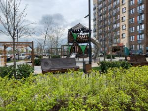 с термальным комплексом. Огромный парк для семейного отдыха с прогулочными аллеями, лавочками для отдыха, амфитеатром, детскими и спортивными площадками, беговыми и велодорожками, скейт площадка, площадка для занятия йогой и пилатеса, зоной выгула и дрессировки собак. Автобусная остановка. Первые этажи комплекса отданы под коммерцию, где успешно расположились супермаркеты, пекарни, салоны красоты, секции занятий спортом для детей, школы дополнительного детского развития и т.д.