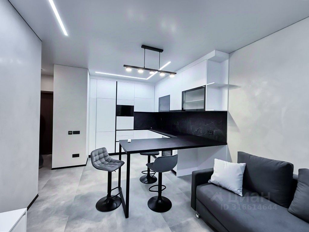 Квартира с новым качественным ремонтом, оснащена мебелью и бытовой техникой. Из окон открывается потрясающий вид на историческую часть города. Планировка квартиры включает в себя: комнату площадью 18 кв. м, кухню — 15,7 кв. м, совмещённый санузел — 4,5 кв. м, прихожую — 6,4 кв. м и большую лоджию.