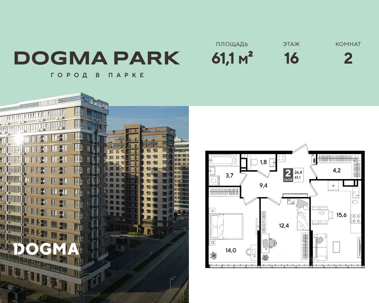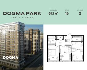 В продаже 2-комнатная квартира от застройщика! Мкр. "DOGMA PARK" г. Краснодар, Литер 16 Срок сдачи: 4 кв. 2027, общей площадью 61.1 кв.м., на 16 этаже.