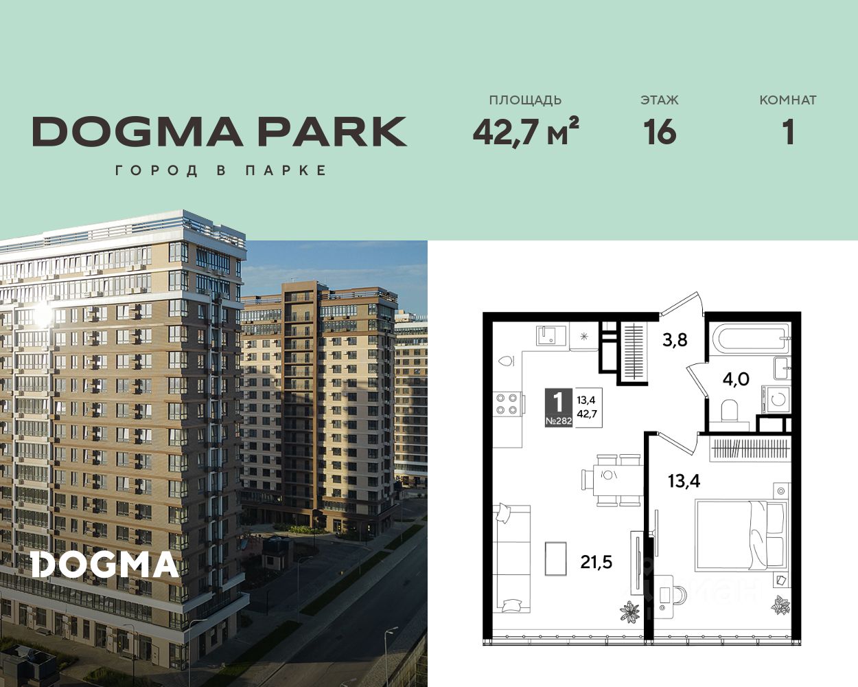 В продаже 1-комнатная квартира от застройщика! Мкр. "DOGMA PARK" г. Краснодар, Литер 16 Срок сдачи: 4 кв. 2027, общей площадью 42.7 кв.м., на 16 этаже.