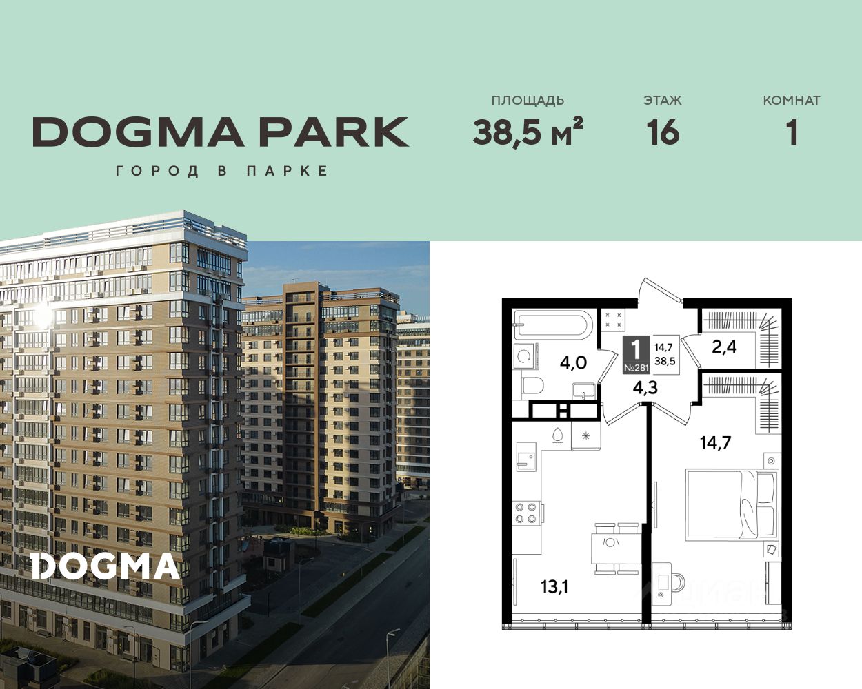 В продаже 1-комнатная квартира от застройщика! Мкр. "DOGMA PARK" г. Краснодар, Литер 16 Срок сдачи: 4 кв. 2027, общей площадью 38.5 кв.м., на 16 этаже.