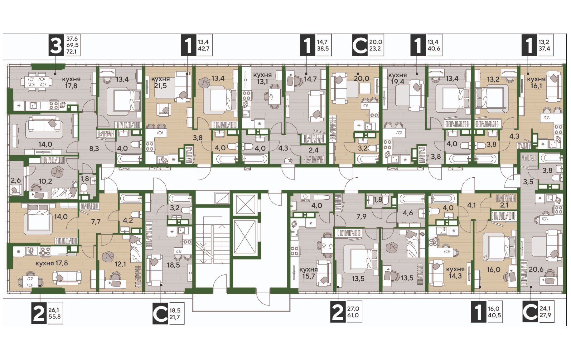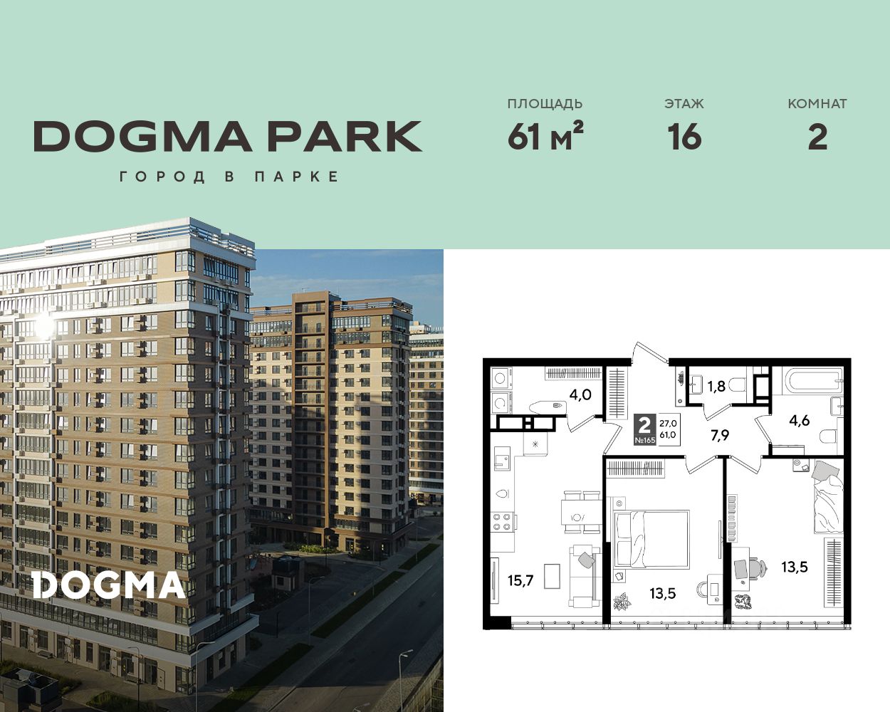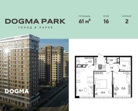 В продаже 2-комнатная квартира от застройщика! Мкр. "DOGMA PARK" г. Краснодар, Литер 15 Срок сдачи: 4 кв. 2027, общей площадью 61 кв.м., на 16 этаже.