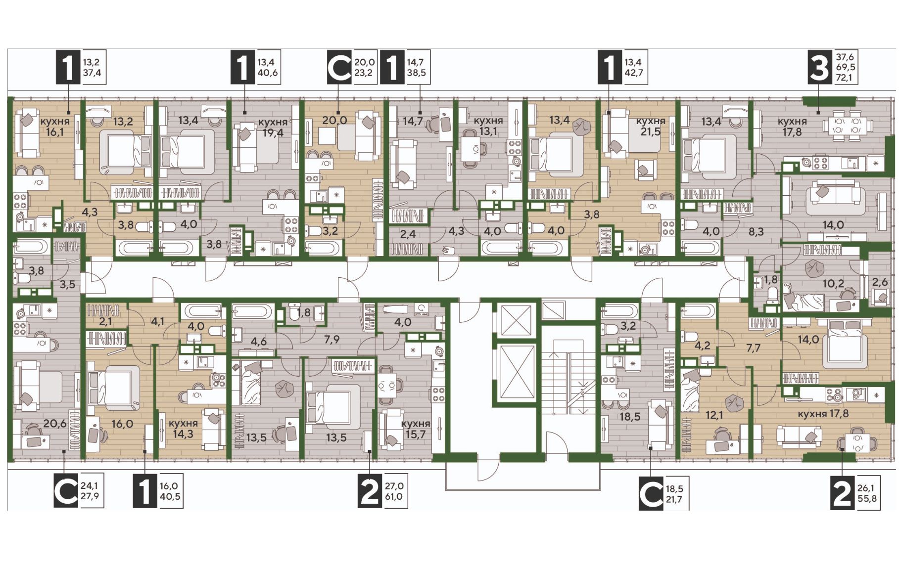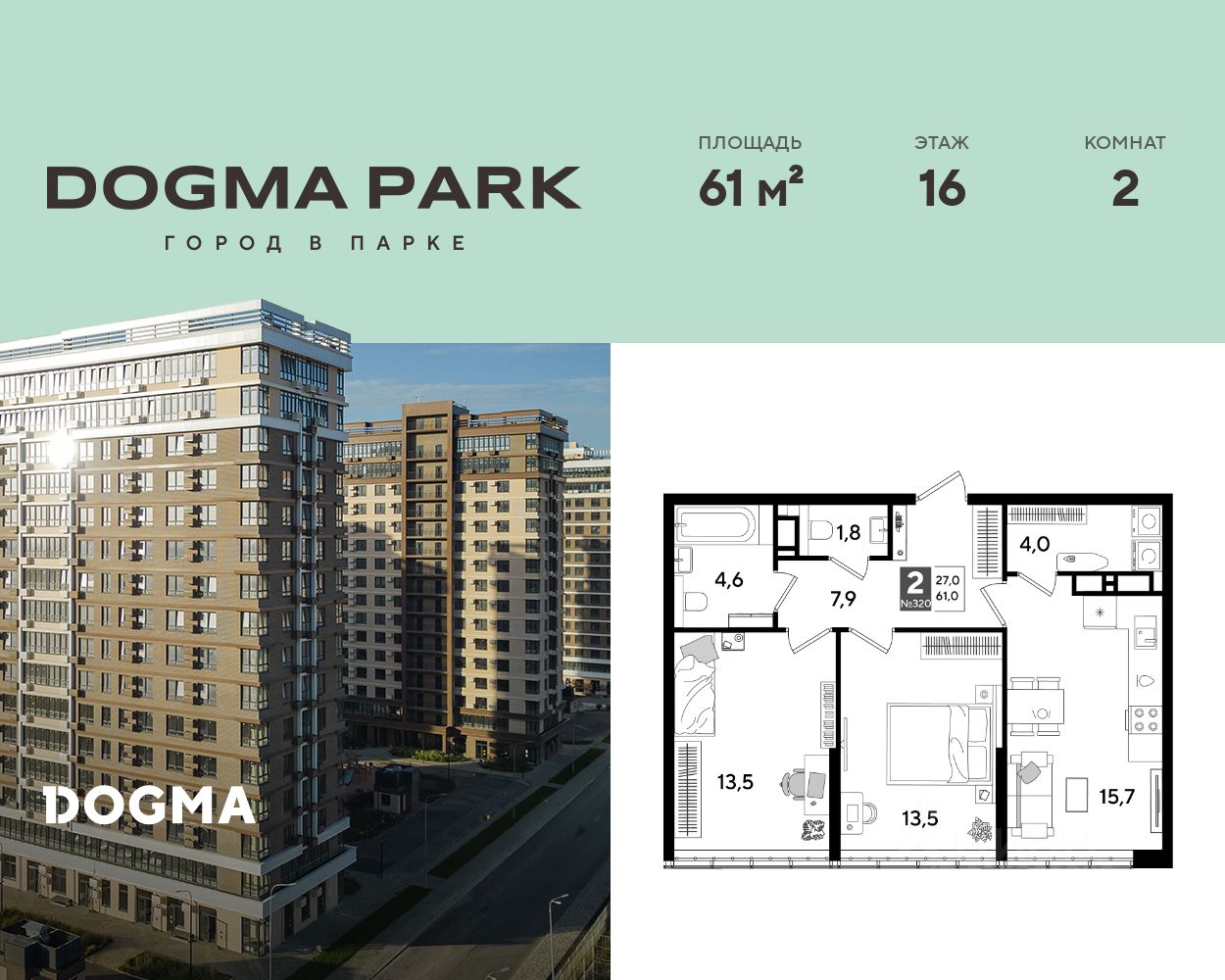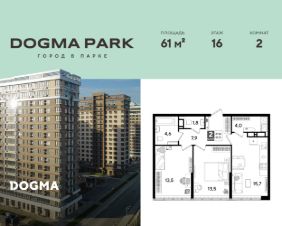 В продаже 2-комнатная квартира от застройщика! Мкр. "DOGMA PARK" г. Краснодар, Литер 15 Срок сдачи: 4 кв. 2027, общей площадью 61 кв.м., на 16 этаже.