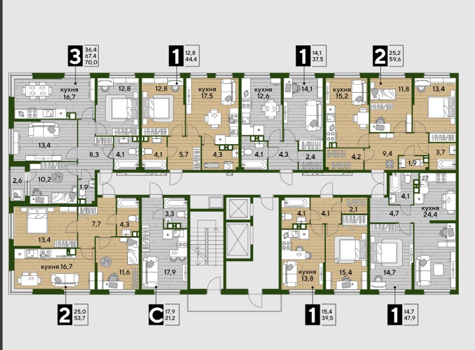 В продаже 3-комнатная квартира от застройщика! Мкр. "DOGMA PARK" г. Краснодар, Литер 20 Срок сдачи: 4 кв. 2027, общей площадью 70 кв.м., на 8 этаже.