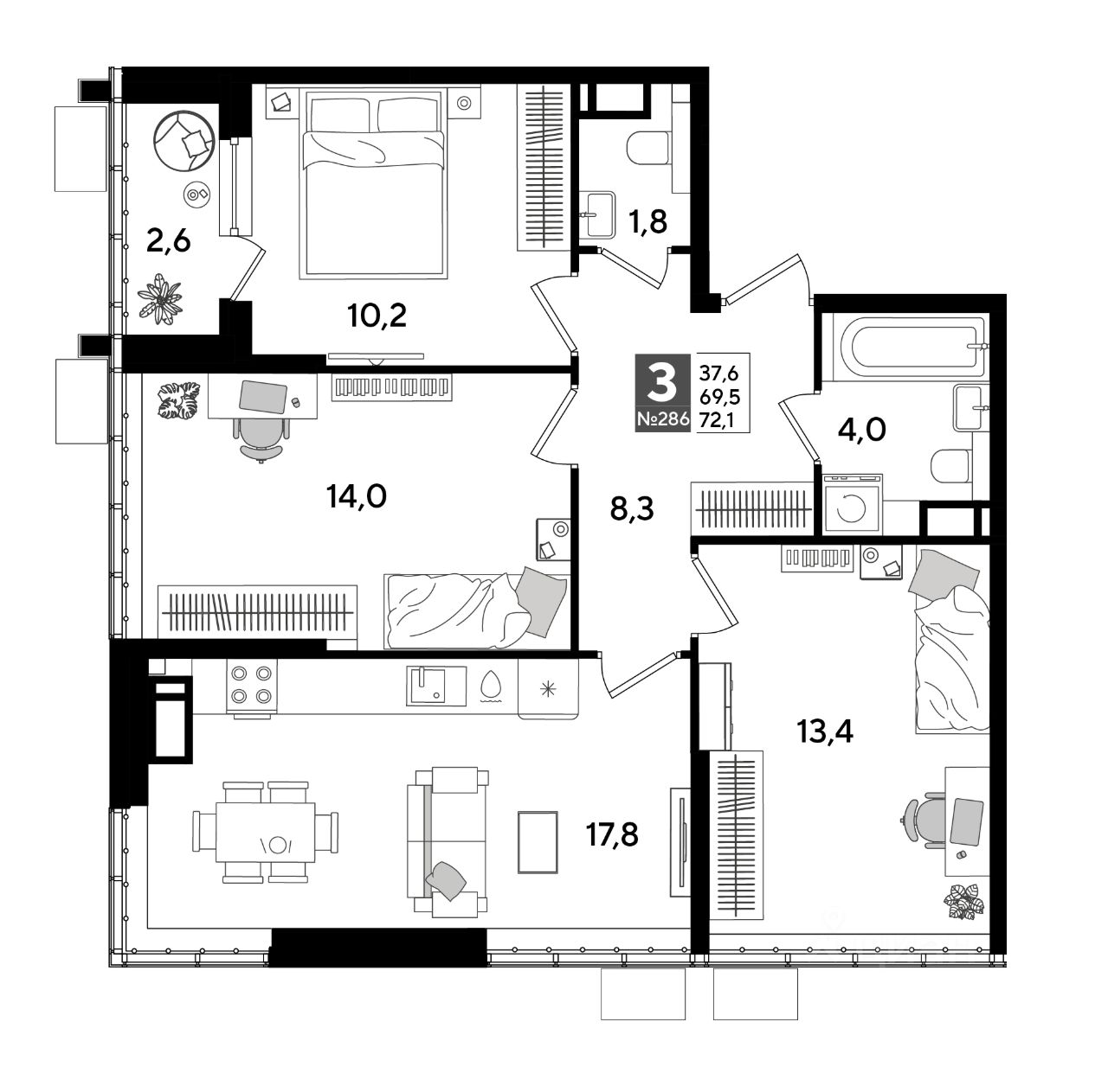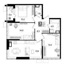 В продаже 3-комнатная квартира от застройщика! Мкр. "DOGMA PARK" г. Краснодар, Литер 20 Срок сдачи: 4 кв. 2027, общей площадью 72.1 кв.м., на 19 этаже.