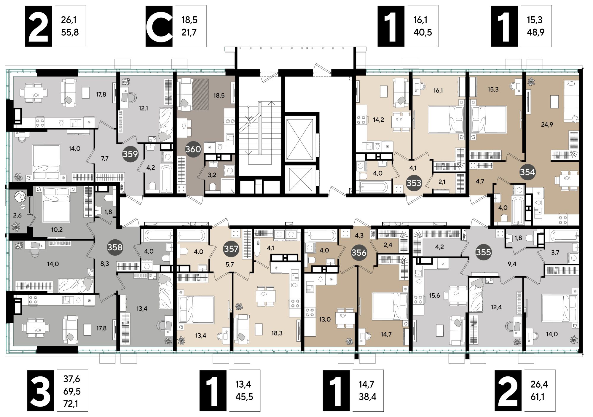 В продаже 1-комнатная квартира от застройщика! Мкр. "DOGMA PARK" г. Краснодар, Литер 19 Срок сдачи: 4 кв. 2027, общей площадью 46.9 кв.м., на 16 этаже.