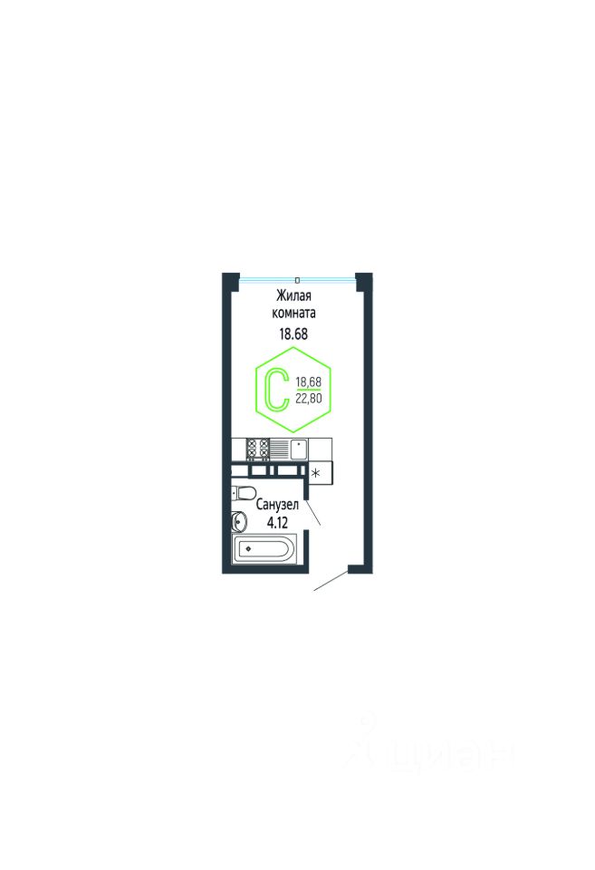 Общая площадь22,94 м²