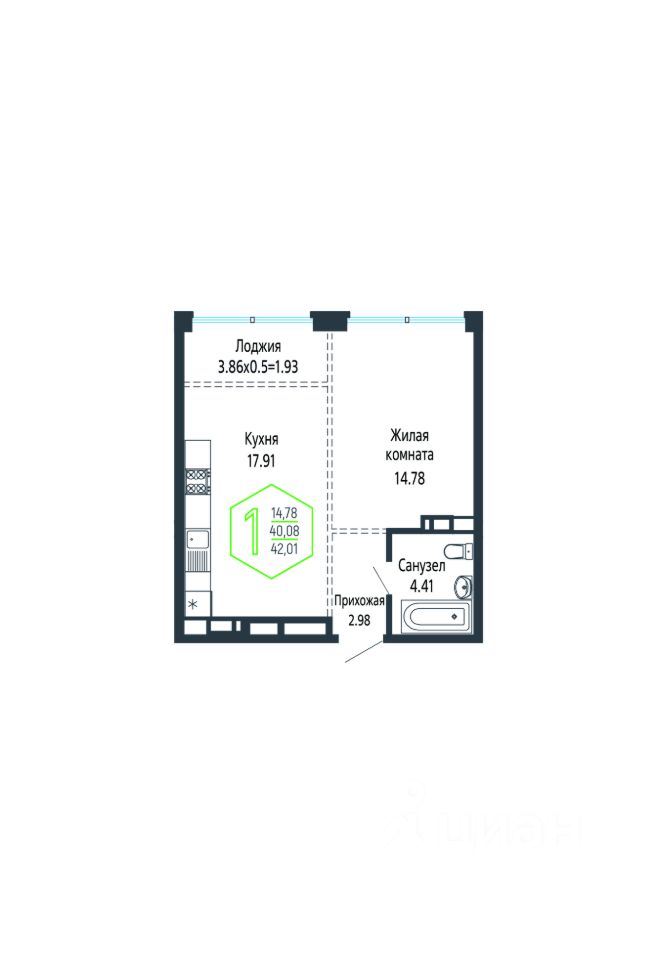 Общая площадь42,01 м²