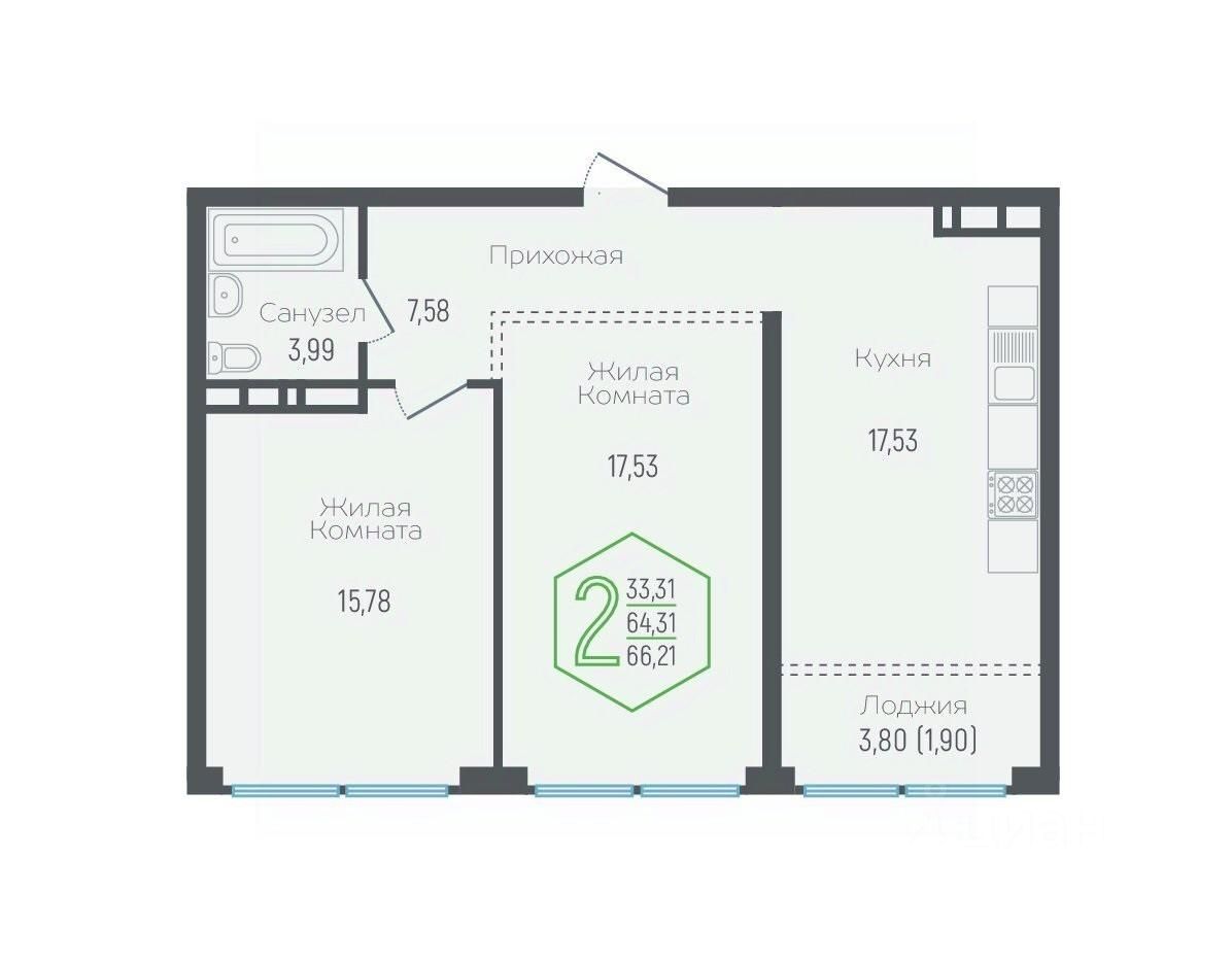 Жилая площадь33,3 м²