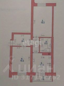 Общая площадь квартиры 60,1 кв.м. Одна комната - 19,6 кв.м. Вторая комната - 15,2 кв.м. Просторная кухня 11 кв.м. с выходом на застекленную лоджию - 1,8 кв.м. Санузел совмещённый - 5,3 кв.м. Ванная комната в плитке, установлена душевая кабина.