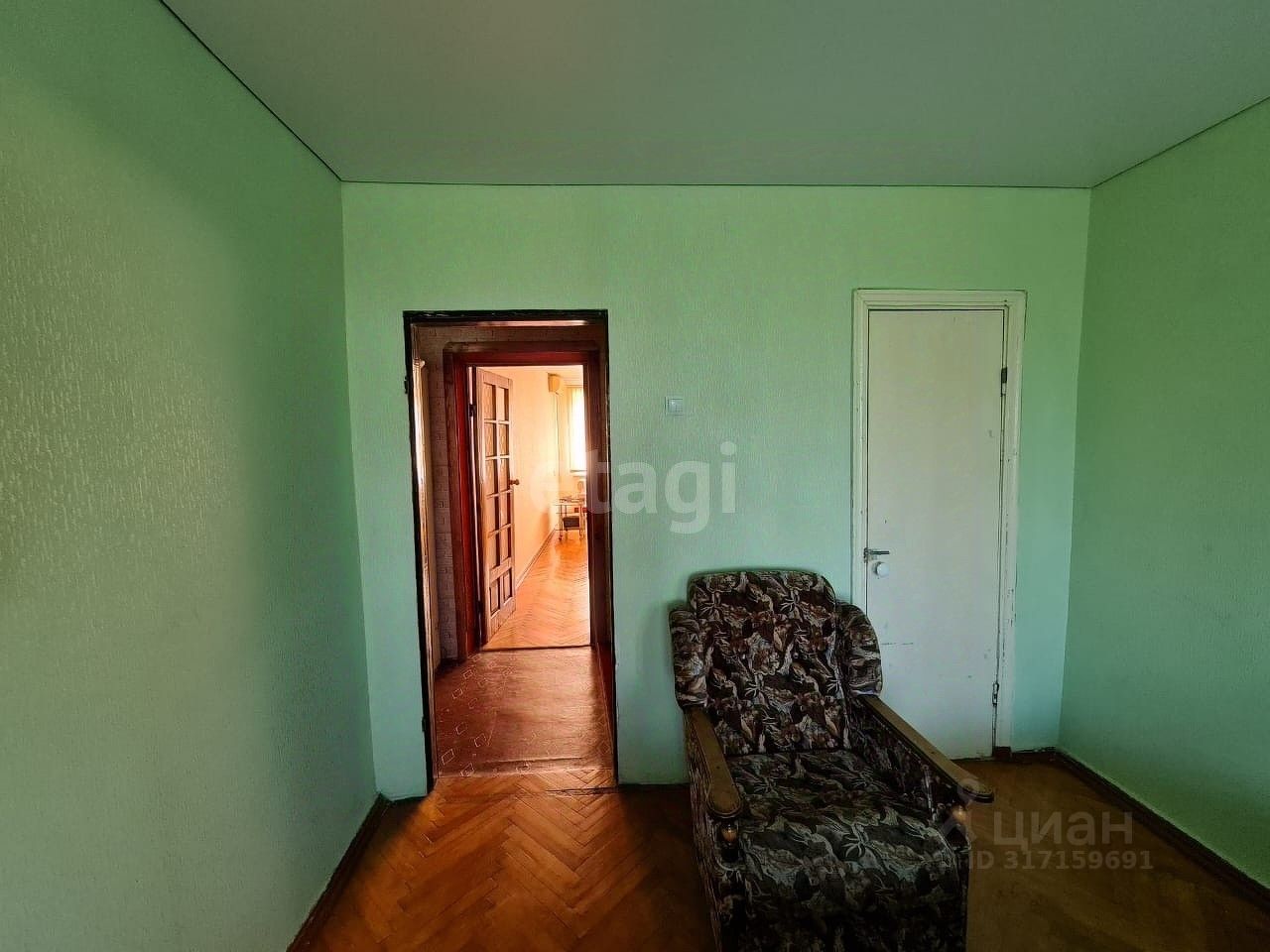 На полу паркет, натяжные потолки, пластиковые окна. Требуется частичный ремонт.
