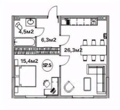 Предлагаемая квартира расположена на 2 этаже, общая площадь 52 м2. Состоит из просторной кухни-гостиной 26,3 м2 с возможностью зонирования, и уютной спальни 15,4 м2 с нишей под просторный встроенный шкаф. Прихожая 6,3 м3 удобной квадратной формы и санузел 4,5 м2. Планировки квартир в ЖК "Мечта" выгодно отличаются от других новостроек нашего города. Высота потолков 2,9 м, панорамное остекление (высота окон 2,6 м), делает пространство максимально воздушным и светлым.