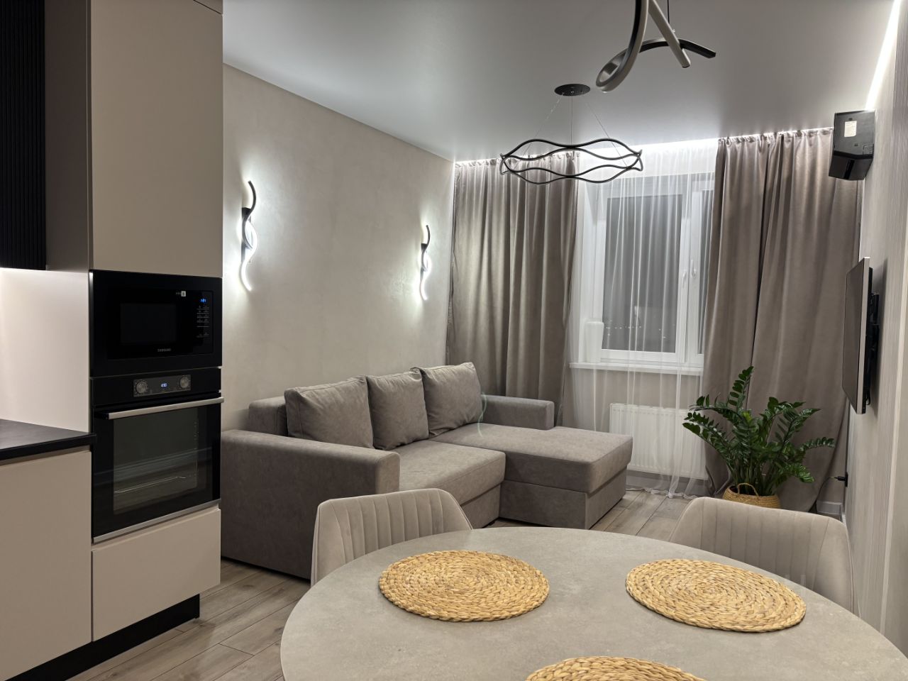 Кухня оборудована новой качественной техникой: холодильник, микроволновая печь, духовой шкаф, индукционная панель, вытяжка, посудомоечная машина, стиральная машина, проточный фильтр. В квартире остаётся вся мебель и техника! В комнатах и коридоре встроенные шкафы.