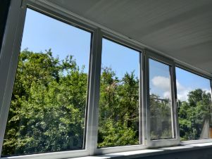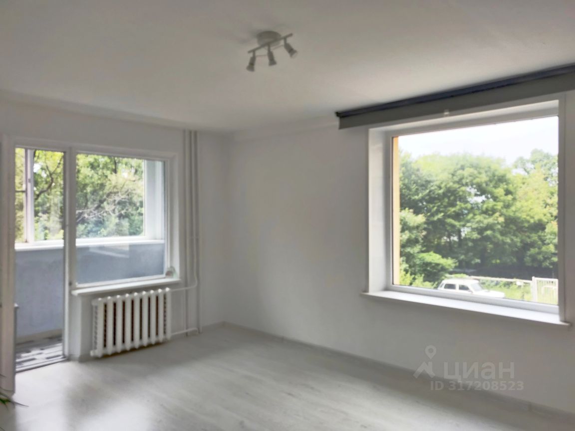 Площадь комнат 9,1 и 16,8 кв м - раздельные без дверей в коридор (без них стало светлее и просторнее). Лоджия вдоль комнат с видом на деревья и внутреннюю часть двора.