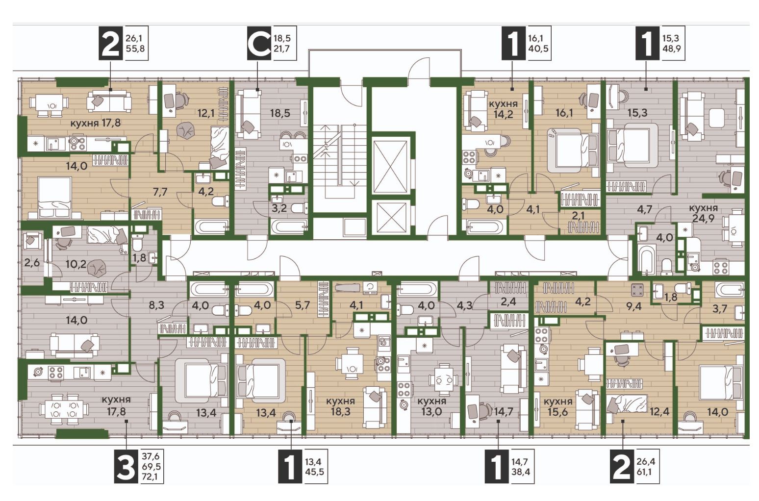 В продаже 3-комнатная квартира от застройщика! Мкр. "DOGMA PARK" г. Краснодар, Литер 14 Срок сдачи: 4 кв. 2027, общей площадью 72.1 кв.м., на 19 этаже.