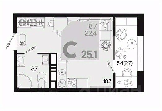 Общая площадь25,1 м²